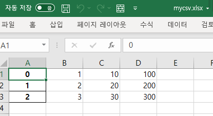 to_excel 메소드를 이용하여 엑셀파일을 저장합니다.