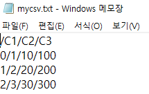 df1.to_csv('mycsv.txt',sep='/',header=False,index=False,mode='a')
