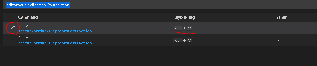2) 검색창에 editor.action.clipboardPasteAction 입력