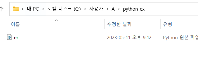 ex.py 라고 이름을 붙였고, 저는 아래 경로에 저장하였습니다.